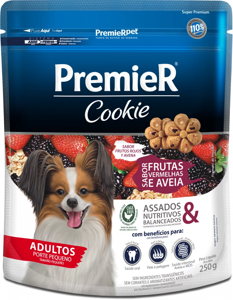 Harina de trigo, proteína porcina aislada, colágeno hidrolizado, leche desnatada en polvo, huevo deshidratado, almidón de maíz, avena (5,0%), dextrina, harina de arroz, salvado de trigo, frutos rojos deshidratados – fresa y mora (1,0%), puntina de arroz, grasa porcina, ácido cítrico, antioxidantes (tocoferol y extracto de romero), bicarbonato de sodio, biotina, carbonato de calcio, colorantes naturales (carmín de cochinilla, clorofila, remolacha y urucum), goma xantana, hexametafosfato de sodio (0,1%), hidrolizado de hígado porcino, mananoligosacáridos (0,2%), quelato de aminoácido de zinc.